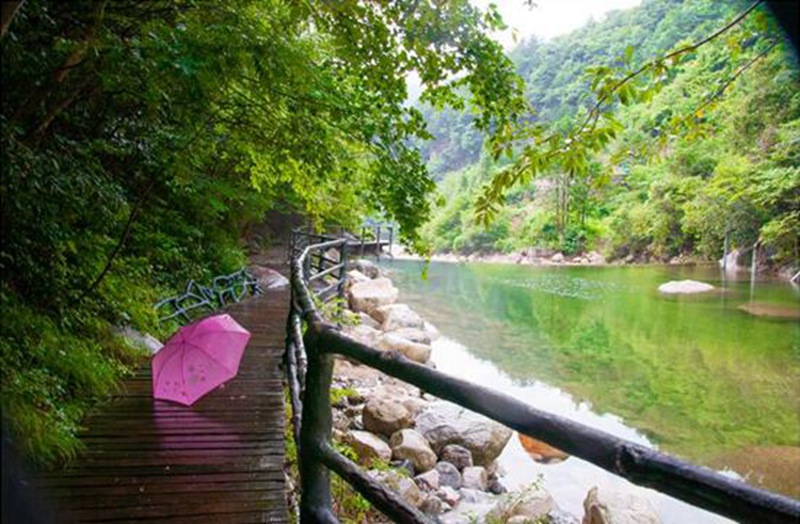 下(xia)午(wu)兩個多小時車(che)程,直奔天堂寨白(bai)馬大峽谷,迎接我(wo)的(de),是一(yi)場酣暢(chang)淋漓的(de)大雨(yu),將我(wo)擋在門(men)前,來不(bu)及奔跑,急風(feng)裹著(zhu)驟雨(yu),打濕我(wo)的(de)衣裳。同(tong)(tong)事(shi)打趣(qu),平(ping)日喜愛(ai)詩歌的(de)你(ni),何不(bu)即景(jing)吟詩一(yi)首?望著(zhu)連綿的(de)烏云和起伏的(de)黛山(shan),竟一(yi)時說(shuo)不(bu)出一(yi)句(ju)話來。此刻,只見同(tong)(tong)行的(de)同(tong)(tong)事(shi),撐一(yi)把黑傘,正拾(shi)級而(er)上,不(bu)急不(bu)緩,閑庭(ting)信步,此時的(de)狂風(feng)暴雨(yu)似乎與他無關,同(tong)(tong)事(shi)見狀哈哈大笑,正所(suo)謂“心中有晴雨(yu)亦晴”。